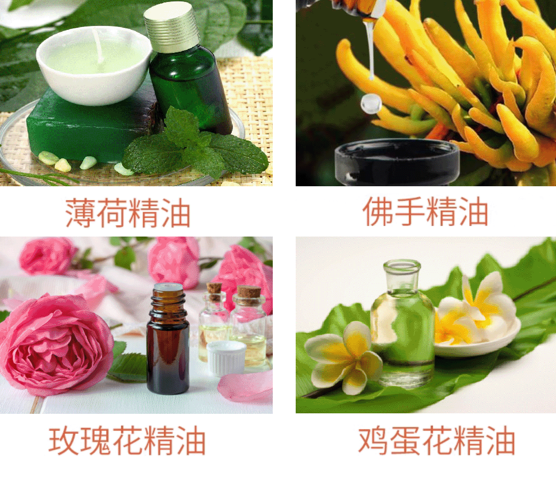 1:常規植物花葉:天竺葵、玫瑰花、檸檬香脂、桂花洋甘菊、野山菊、薰衣草、艾草、迷迭香、廣藿香臘梅、香根草、槐花、見月草、薄荷、百里香。